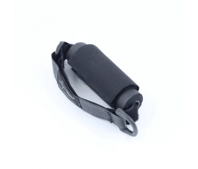 Equipado com um anel em D e uma cinta elástica, é indicado