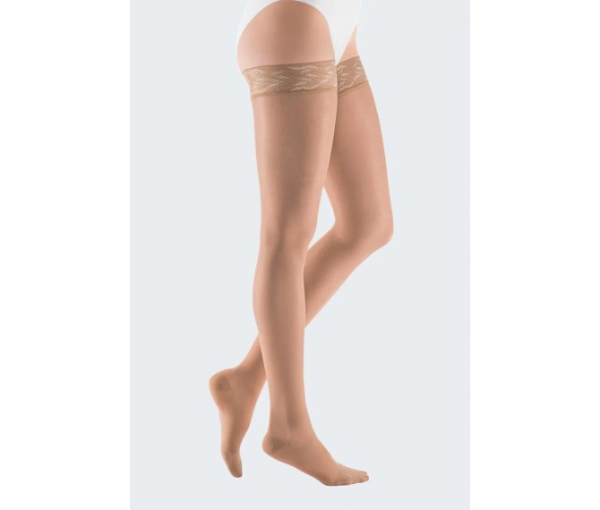 As meias elásticas são um dispositivo médico no qual só com tiragem de medidas se consegue ter a compressão clinicamente correta em toda a perna. Usar um tamanho maior ou menor que o correto só fará o utente piorar, correr riscos desnecessários e daí surgirem problemas graves que são totalmente evitados com o uso do tamanho certo! Não brinque com a sua saúde! Consulte a tabela de medidas do artigo. As medidas devem sempre ser tiradas logo ao início da manhã, a pessoa deve estar de pé, com as pernas afastadas e o peso distribuído pelas duas pernas. Para uma meia até à raiz da coxa ou collant, devem ser tiradas 4 medidas: Tornozelo, barriga da perna, coxa e altura da perna (ver na tabela de medidas o local onde deve tirar essas medidas). Para medir a altura de perna deve estar de pé e medir a altura da perna pelo interior da mesma, desde a base do calcanhar até dois dedos abaixo da dobra do joelho.