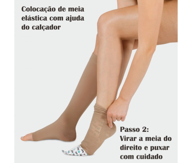 As meias elásticas são um dispositivo médico no qual só com tiragem de medidas se consegue ter a compressão clinicamente correta em toda a perna. Usar um tamanho maior ou menor que o correto só fará o utente piorar, correr riscos desnecessários e daí surgirem problemas graves que são totalmente evitados com o uso do tamanho certo! Não brinque com a sua saúde! Consulte a tabela de medidas do artigo. As medidas devem sempre ser tiradas logo ao início da manhã, a pessoa deve estar de pé, com as pernas afastadas e o peso distribuído pelas duas pernas. Para uma meia até ao joelho, apenas precisa tirar 3 medidas: Tornozelo, barriga da perna e altura da perna (ver na tabela de medidas o local onde deve tirar essas medidas). Para medir a altura de perna deve estar de pé e medir a altura da perna pelo interior da mesma, desde a base do calcanhar até dois dedos abaixo do joelho.