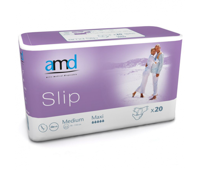 A Fralda AMD SLIP Maxi tem uma absorção de até 3400ml no tamanho M e até 3850ml no tamanho L. Escolha uma fralda que melhor serve as suas necessidades. Esta fralda é muito utilizada como fralda noturna, no entanto há muitas pessoas que a utilizam também durante o dia pela excelente absorção. Quanto mais absorvente for a fralda, menos vezes troca a fralda, gastando menos fraldas, sendo que também promove a manutenção de uma pele mais saudável, com menos assaduras e irritações.