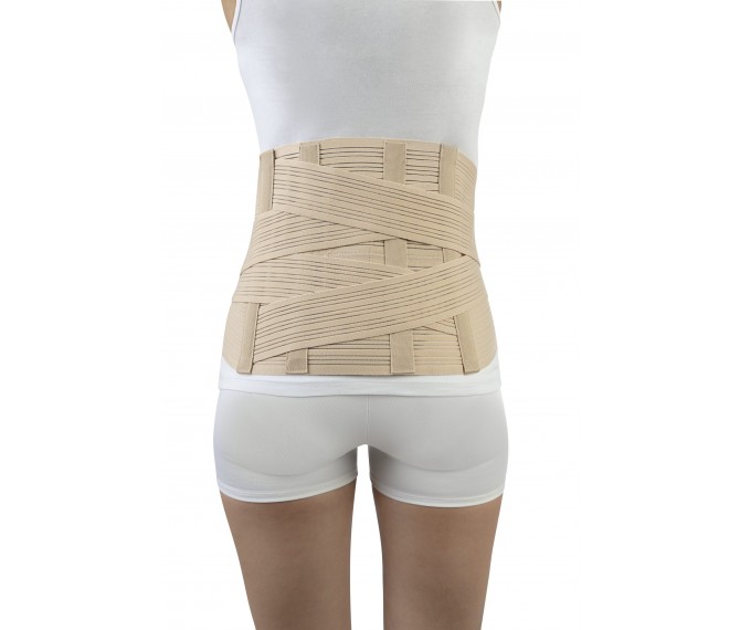 Fabricada em material elástico multibanda com duas bandas cruzadas, proporcionando respirabilidade, suavidade e conforto. Incorpora duas bandas elásticas tensoras cruzadas na parte de trás que permitem um fácil posicionamento e ajuste na parte da frente de acordo com as necessidades do utilizador.