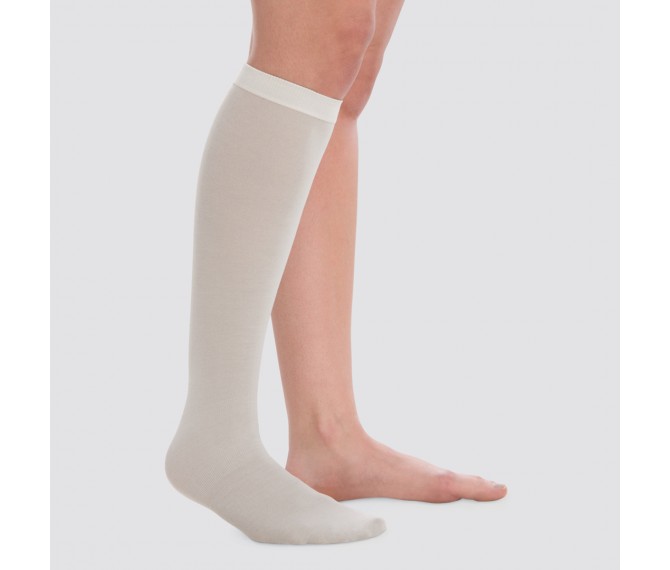Permite o uso de meias elásticas em pacientes com pele extremamente sensível, sendo colocadas por dentro das meias elásticas. Ideal para a integração de compressas para o tratamento de lesões e para a fixação de almofadas especiais para o tratamento de casos críticos, sem perigo de deslocamento. Estas meias são fornecidas em pacotes com 3 meias interiores nos tamanhos S/M e para todos os diâmetros de perna abaixo de 50cm e L/XL para pernas com diâmetro superior a 50cm.