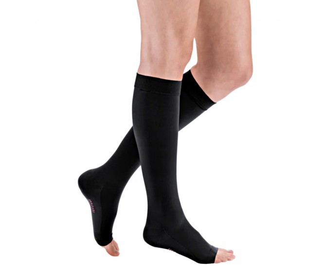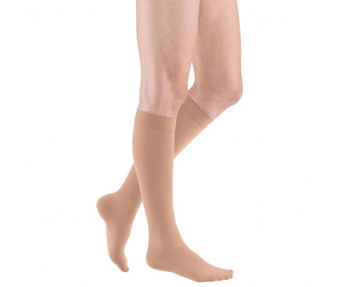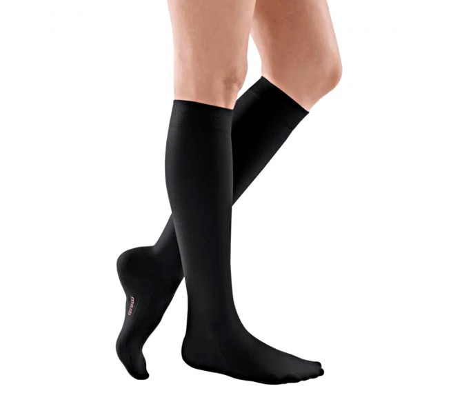 A meia de compressão Mediven Comfort até ao joelho oferece um raro equilíbrio entre suavidade e eficácia. O nosso objetivo é tornar a terapia de compressão o mais agradável possível. Apenas o melhor é bom para si! Especialmente indicada para pessoas com pele sensível, muito fina, frágil, seca e áspera.