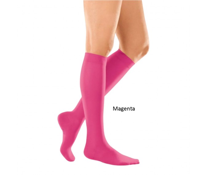 Meia de compressão ultra moderna! Veja a beleza, brilhante na forma e maior transparência. A elegância em voga aliada a elevada eficácia. Uma meia de compressão até ao joelho com um sortido atual de cores modernas. Nunca foi tão atraente usar uma meia de compressão.